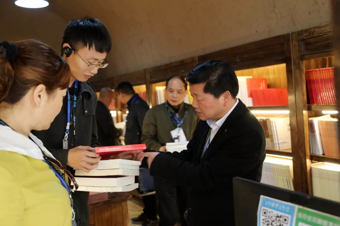 集團董事長帥放文(右一)和黨總支書記楊傑(右二)探討加強企業黨建
