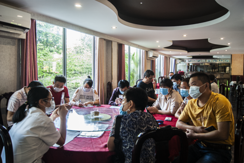 隨後,現場應聘人員從個人能力、求職原因、家庭情況等方面進行分組面試。應聘者中大多數都是在柬工作中籍人員,是難得的會柬語、對當地情況十分分析的技術工人。受疫情影響,許多工人所在的工廠停產關閉,對他們的生活造成了嚴重的影響,因此他們迫切需要一份穩定的工作。