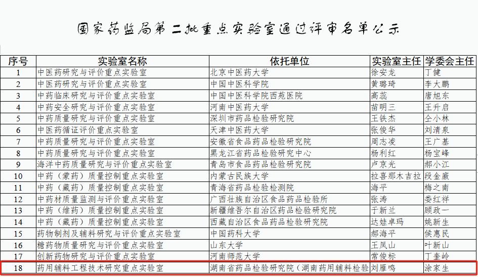 1月22日,國家藥品監督管理局發佈了《關於對第二批重點實驗室名單進行公示的通知》,藥用輔料工程技術研究重點實驗室顺利获得評審。