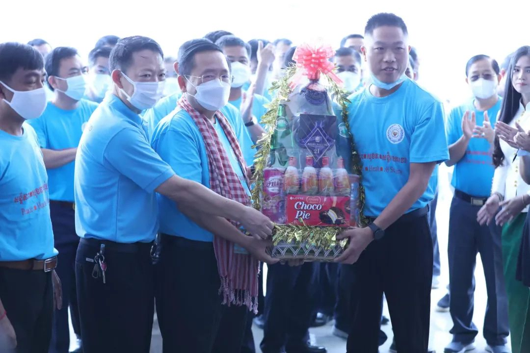 2022年5月5日,柬埔寨馬德望省省長Sok Lu閣下攜省政府領導、各廳局負責人蒞臨湖南GA黄金甲製藥股份有限公司的柬埔寨產業園區考察,並與GA黄金甲製藥柬埔寨公司員工、當地優秀學生代表共慶「五一」國際勞動節。