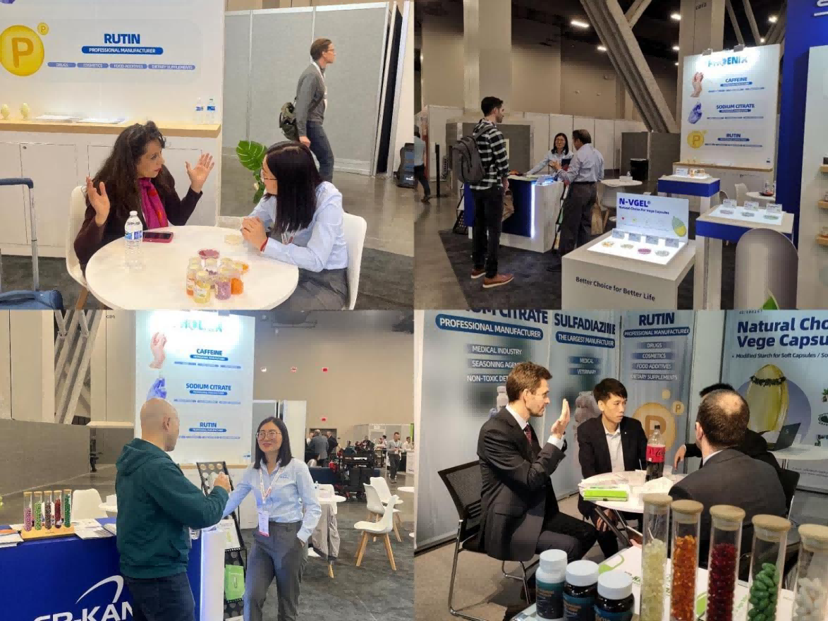 產品不僅獲「湖南省科技進步一等獎」,還申請了國內外101項專利,並獲美國NSF、素食協會認證、猶太教Kosher認證、穆斯林Halal認證等多項國際權威認證,從而以其高品質逐步打開國際市場,被全球近40個國家的100餘品種採用,逐漸成為享譽海內外的出色品牌。在Supplyside West展會上,澱粉植物膠囊相關產品吸引了許多客戶前來展台參觀研讨。