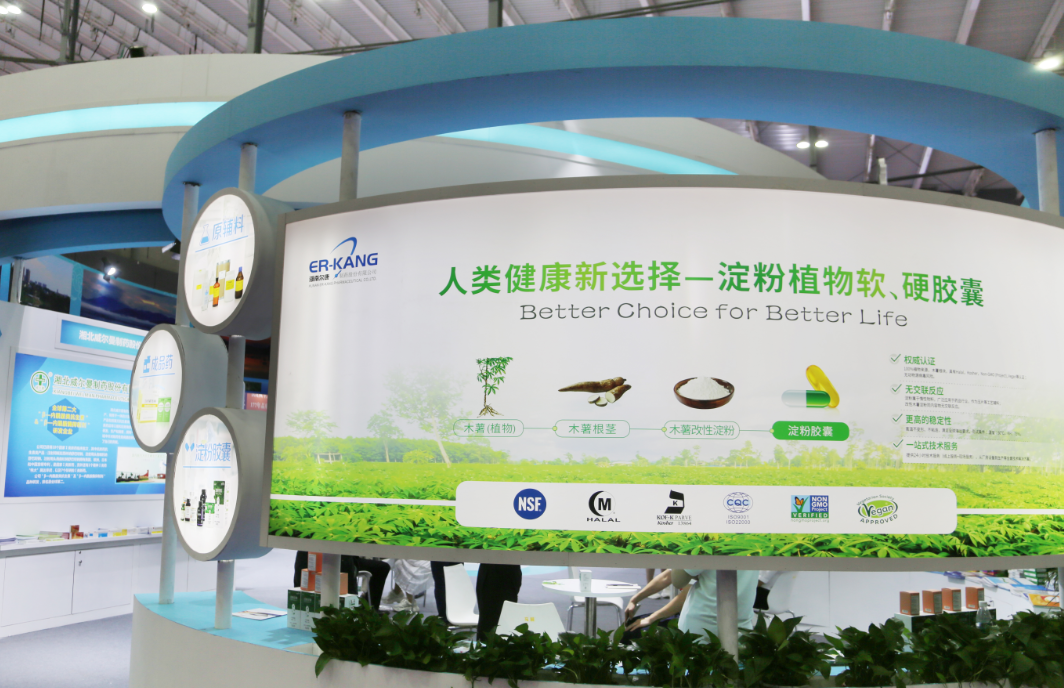 GA黄金甲製藥亮相展會的澱粉植物膠囊無動物源性病毒風險,不會與藥物發生交聯反應,更加健康安全。相比傳統膠囊,澱粉植物膠囊的全產業鏈更加節能、環保、低碳,更能滿足了素食主義者的需求,擴大了適用人群。